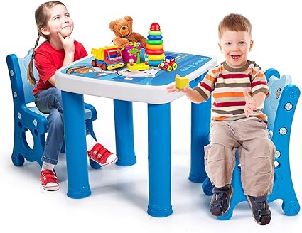 Desk 35 3/8x31 1/2x39 3/8. This table provides a perfect surface so your children can have multiple outdoor playtime options. Explore our range of childrens table and chairs with a variety of materials, sizes and colors. This set is a convenient solution for times when you have more guests than table settings. Might have to add some support beams under the the table to be able to hold his weight π¬ 5 Cute little table and chair trecia cute little table and chair set! ( 4.6 ) out of 5 stars 567 ratings , based on 567 reviews current price $43.00 $ 43. He also love climbing/sitting on top of the table. This set can be used as a homework study desk, an arts and crafts activity center, or a board game. Space adventures kids wood table and chair set with storage. 00 list price $52.00 $ 52. Perfectly sized for young children, this practical play table features a spacious square tabletop and two coordinating chairs with vertical spokes and curved backs. Constructed from strong and sturdy wood, this stylish set complements any child's bedroom or playroom, and is stylish enough to be placed in all areas of your home.